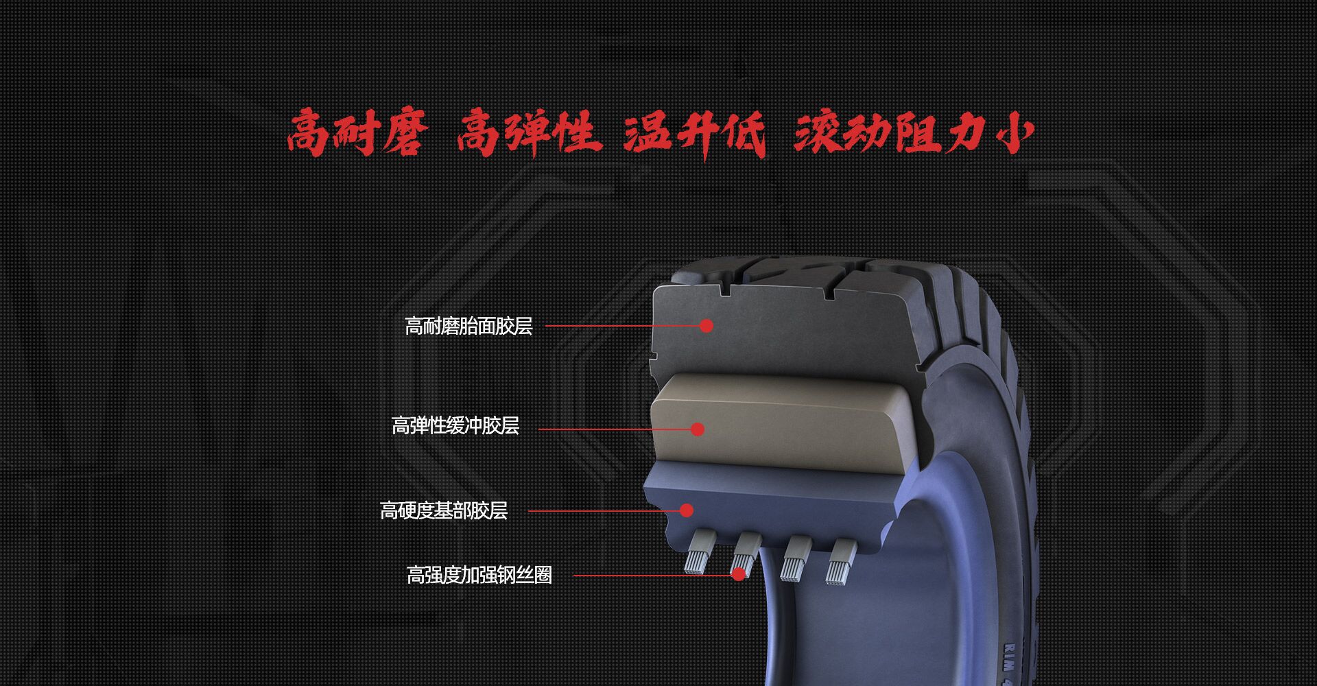 實心輪胎主要適用于地面復雜惡劣工況下的叉車、拖車、裝載機、軍用車輛等機械車輛的配備,廣泛應用 于鋼鐵廠、礦山、建筑工程、港口、物流、廢金屬加工廠等領域。 實心輪胎胎體為全橡膠構成,最大限度地保證了輪胎的耐刺穿性,從根本上消除了工業(yè)車輛在承載運行過 程中及在惡劣的作業(yè)環(huán)境中的輪胎刺穿隱患。實心輪胎的負荷—形變量小、運行穩(wěn)定性好,因其耐刺耐撕、耐 高溫、耐腐蝕、耐磨損,無需充氣,避免了頻繁補胎換胎的繁重勞動,可提高車輛的使用率和工作效率,在低 速、高效運行車輛